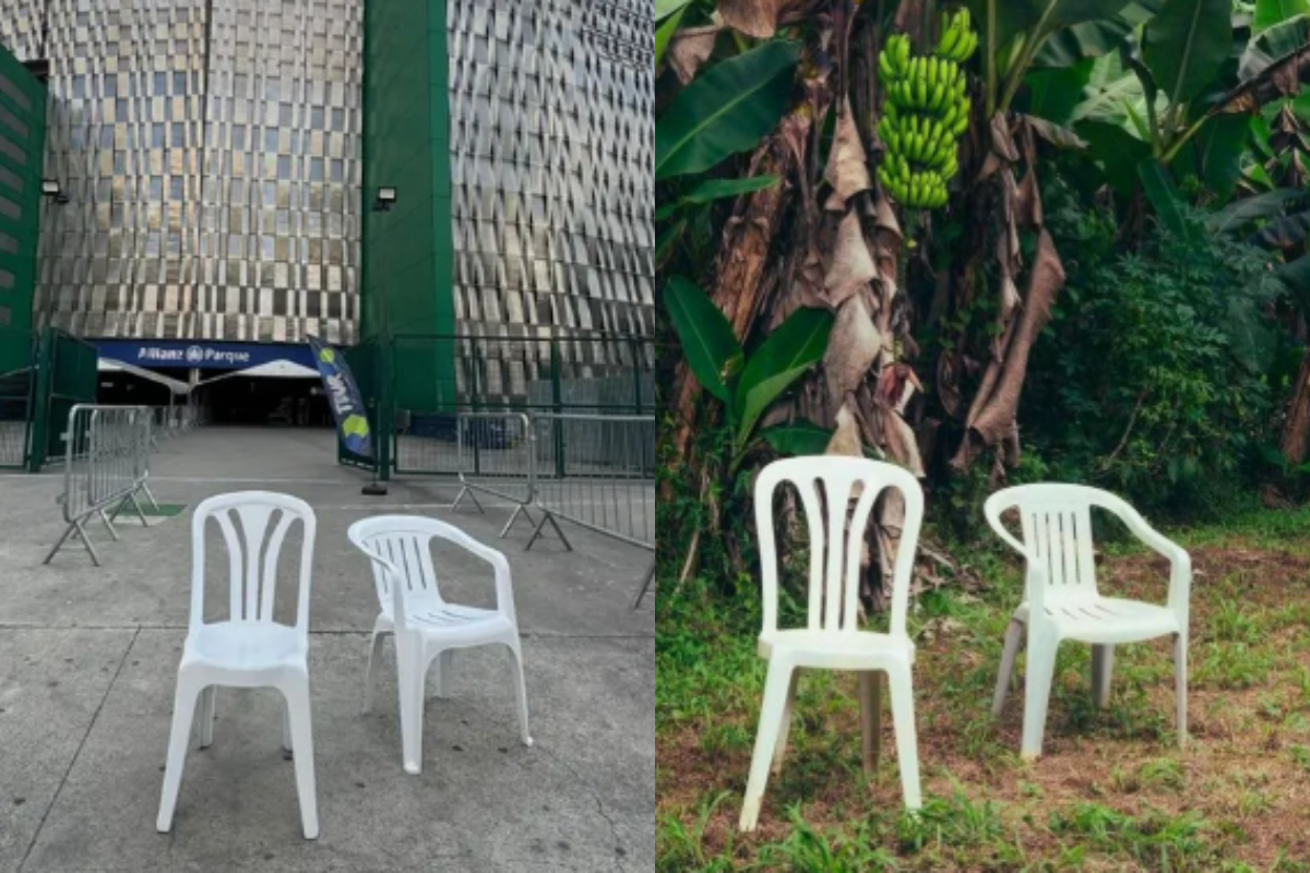 A conta oficial do estádio divulgou uma foto de duas cadeiras em frente à entrada do local, fazendo alusão à capa do álbum "DeBÍ TiRAR MáS FOToS"