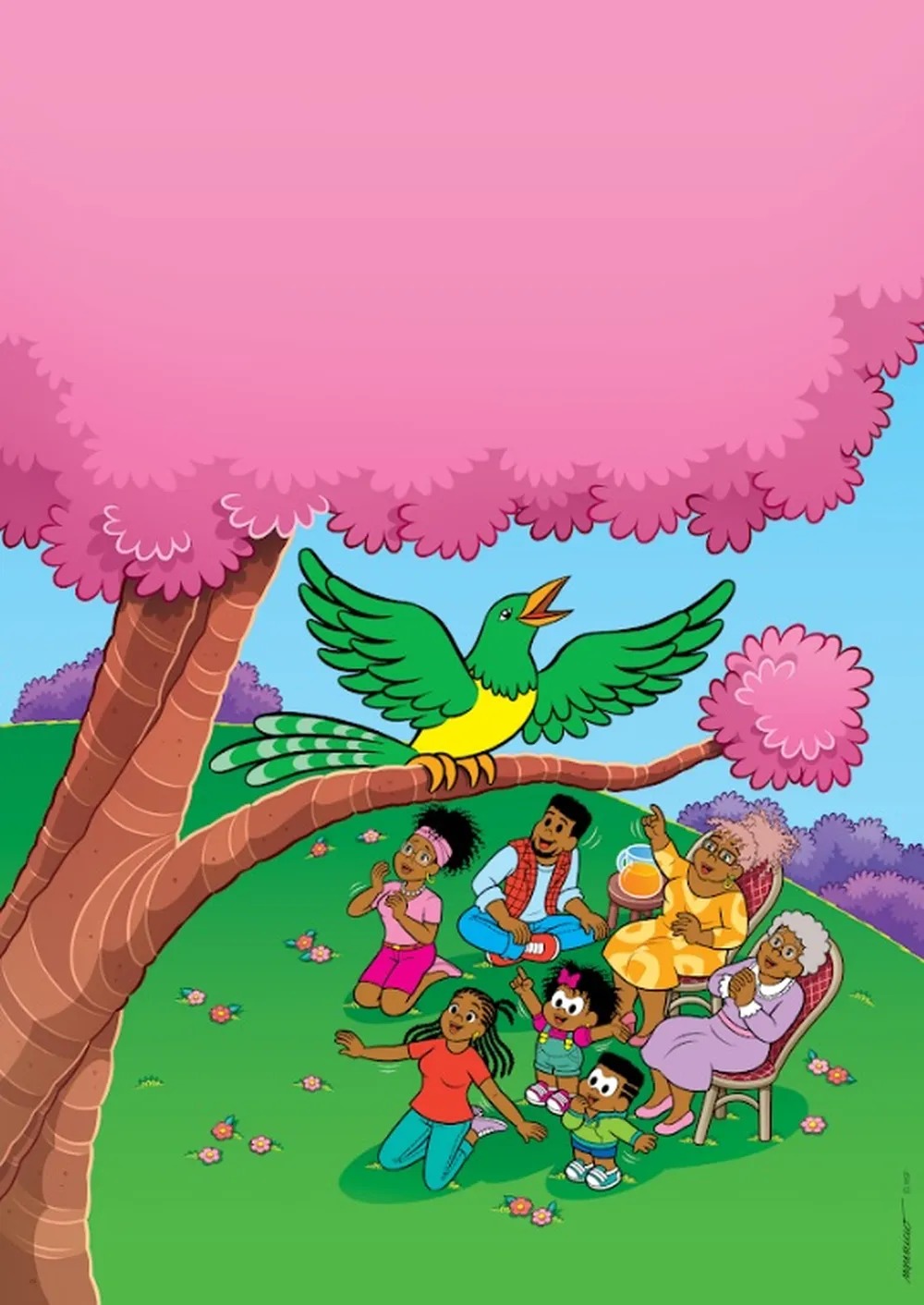 O pássaro Cuco-Esmeraldino: cores brasileiras e origens africanas — Foto: Divulgação MSP EstúdiosJá havia outros personagens negros na turma, como Jeremias, mas não com o mesmo destaque. Na época, o próprio criador culpou pela demora “a falta de conhecimento sobre os problemas que os negros enfrentam em diversas fases de sua vida”. Para fugir dos estereótipos, o estúdio consultou diversas personalidades, como a ex-consulesa da França Alexandra Loras e a direção da Faculdade Zumbi dos Palmares.