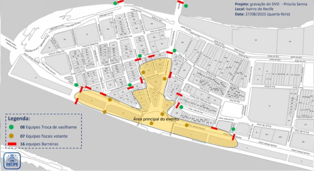Esquema de trânsito para o show de Priscila Senna no Marco Zero | Foto: CTTU/ReproduçãoSegurança