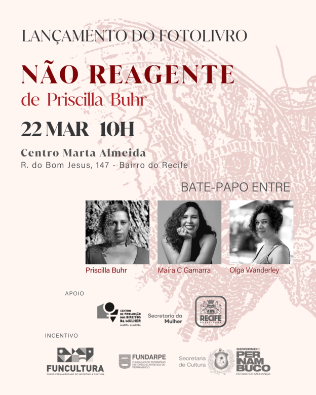 Além do lançamento da publicação - que teve apoio do Funcultura - Governo de Pernambuco - também será promovido um debate de Priscilla com a editora Maíra Gamarra e mediação da produtora Olga Wanderley.
