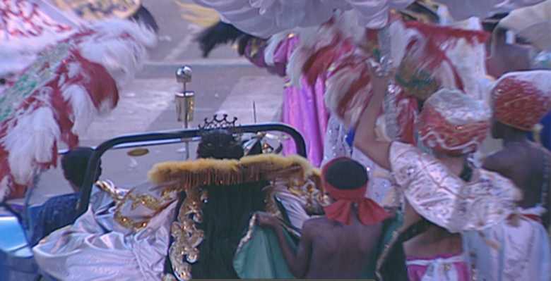 Dona Madalena, que sucedeu Dona Santa no Maracatu Elefante, também foi filmada desfilando nas avenidas do Recife, naquele carnaval de 1995. Mestre Salu, do Maracatu Piaba de Ouro, está ao lado de seu pai, tocando uma rabeca. Há ainda imagens recuperadas do Maracatu Cambinda Brasileira, o mestre João Padre, falecido no mesmo ano em que foi filmado. Assim, o mestre, uma referência para todos e todas que compõem a história do grupo, passou a ter aos olhos dos e das jovens que não o conheceram, mas que tocam as suas narrativas, uma visualidade, um rosto, um gesto, uma voz.