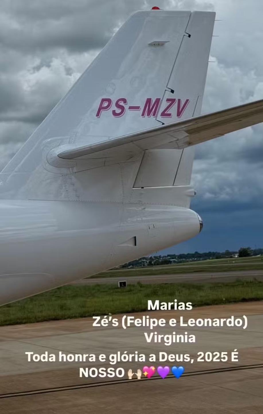 Na época, o avião era chamado de seu "novo brinquedo". O jato tem a sigla PS-MZV, que, segundo a influencer, representa as iniciais dos membros de sua família. No caso, as Marias (as filhas Maria Alice e Maria Flor), os Zés (Zé Felipe e o filho Zé Leonardo) e ela própria, Virginia.
