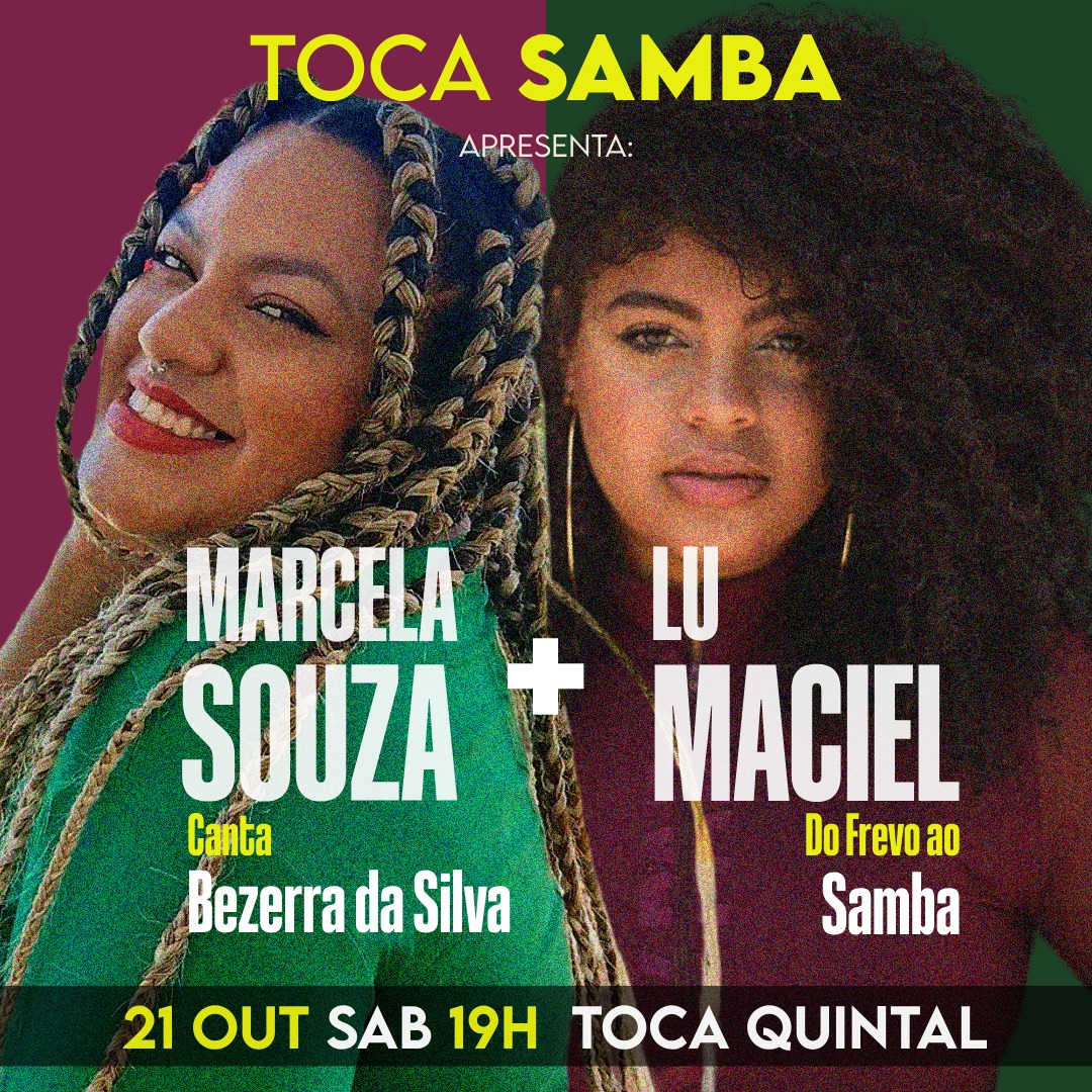 Toca Quintal, com Lu Maciel do Frevo ao Samba e Marcela Souza canta Bezerra da SilvaSábado (21). Abertura da casa às 16h | Shows a partir das 19h