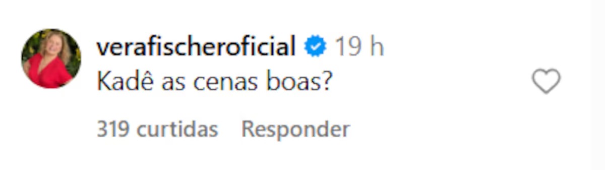 Nos comentários da publicação, Vera brincou: "Cadê as cenas boas?"