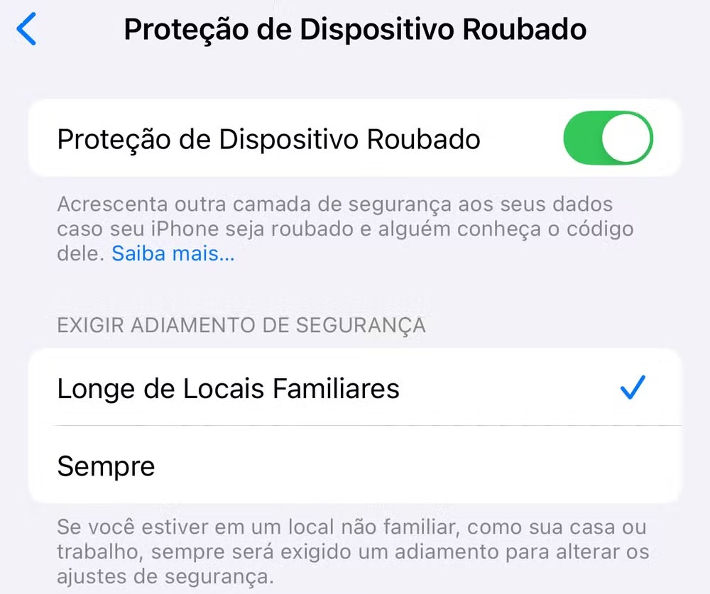 Com o iOS 26, o recurso para proteger o aparelho contra roubos e furtos já vem ativado por padrão de fábrica. Outra novidade é que a opção “Redefinir Face ID” estará automaticamente desativada quando a “Proteção para Dispositivo Roubado” estiver ativa.