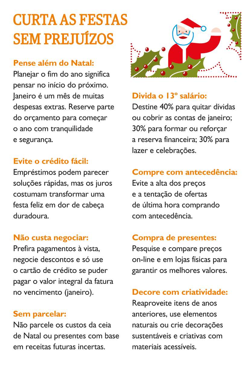 Outra armadilha na hora de contar com os valores disponíveis para custos das festas é o 13º salário, que deve ser tratado como uma renda extraordinária, e não como uma extensão do salário mensal, alerta Thiago Senna. “A divisão ideal é: uma parte para quitar dívidas, outra para fortalecer reservas financeiras e uma terceira para o lazer. Usar 100% da gratificação para consumo imediato é um erro clássico e compromete o início do ano seguinte.”