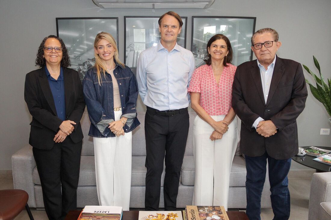 O vice-presidente de Marketing e Pessoas da Azul Linhas Aéreas, Jason Ward, e o membro da Comunicação Institucional da companhia, Rodrigo Moraes, visitaram a sede da Folha de Pernambuco nesta sexta-feira (25). A comitiva foi recebida pela vice-presidente do jornal, Mariana Costa; pelo diretor operacional, José Américo; pela editora-chefe, Leusa Santos; e pela gerente de Mercado, Tânia Campos.