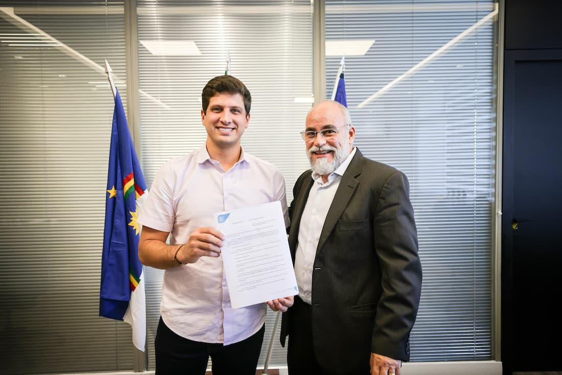 Prefeito do Recife, João Campos, ao lado do secretário municipal de Finanças, Ricardo Dantas | Foto: Edson Holanda/Prefeitura do RecifeFique em Dia: como negociar pelo site
