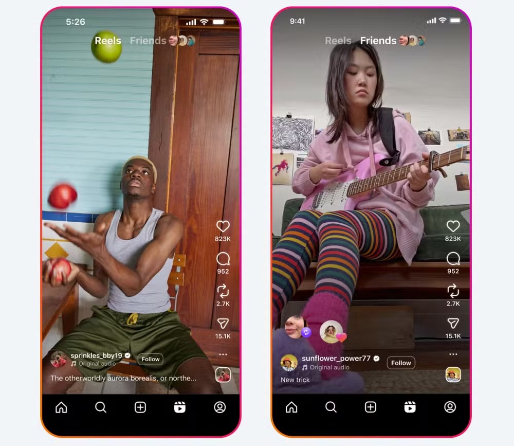 Uma das novidades lançadas foi o recurso de repostagem de Reels, reproduzindo uma ferramenta antiga semelhante ao retuíte no X e uma cópia direta do recurso de repost do TikTok, seu principal concorrente.