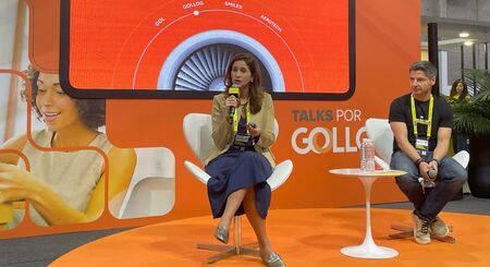 Paula comandou o painel "GOLLOG MELI: operações multimodais que trazem eficiência para o e-commerce", ao lado de Pablo Navarrete, Diretor Sênior de Transportes do Mercado Livre.