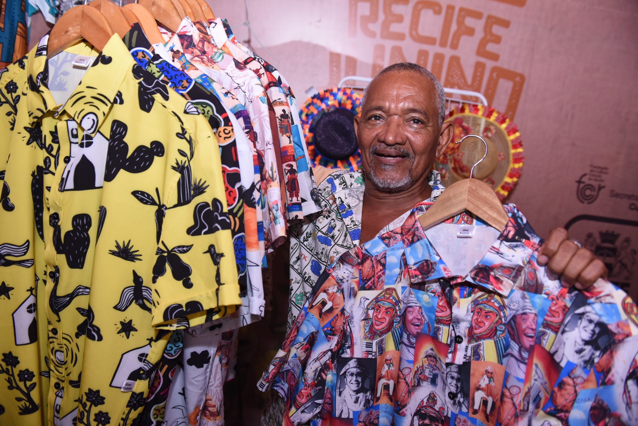 Artesão, Natanael pretende faturar de R$ 6.000 a R$ 8.000. Foto: Paullo Allmeida. Com peças que custam entre R$ 85 e R$ 120, Natanael aposta nas camisas com estampas temáticas do Nordeste. “Luiz Gonzaga, a nossa vegetação, Lampião, Maria Bonita. Essas são as estampas que eu estou trabalhando, que, aliás, já vêm saindo desde o fim do carnaval."