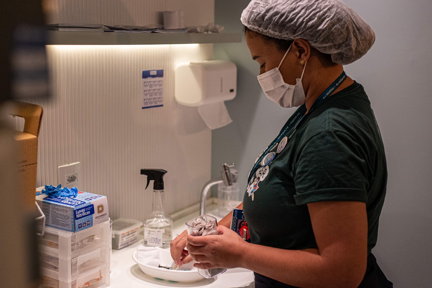 Os profissionais qualificados da Immunológica trabalham para que o processo de imunização não seja doloroso nem no corpo, nem na mente | Foto: Matheus Ribeiro/Folha de PernambucoPara alcançar excelência nessa etapa, a Immunológica implementou o “treinamento de choque” para os seus colaboradores, iniciativa que envolve simulações de situações reais para testar os conhecimentos práticos de cada profissional envolvido.