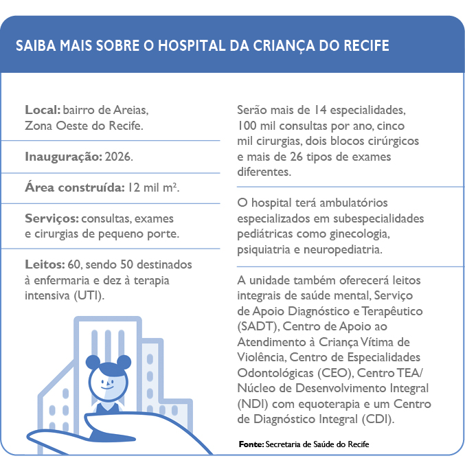 Entre as inovações, a gestão implementou prontuário eletrônico em toda a rede, na atenção básica e na média e alta complexidade. Foto: Douglas Fagner A previsão é de que outro Centro de Convivência seja inaugurado no bairro do Espinheiro, na Zona Norte do Recife, e mais um serviço integrado de saúde mental. Também está nos planos da prefeitura inaugurar mais dois centros TEA. Para 2026, uma das entregas mais aguardadas é o Hospital da Criança do Recife Antônio Carlos Figueira (HCR), no bairro de Areias, na Zona Oeste da capital pernambucana.