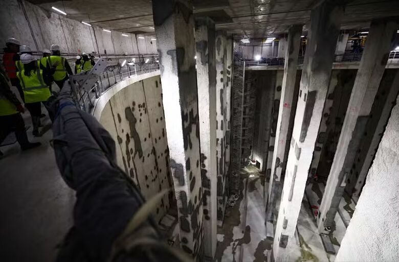 A nova estrutura gigante, escavada a 30 metros de profundidade junto a uma estação ferroviária, é uma parte fundamental dos esforços para limpar o rio Sena, que irá sediar disputas de natação durante os Jogos Olímpicos de Paris, em julho e agosto.