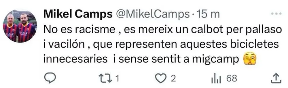 Miquel Camps já havia se manifestado em defesa de Vini Jr. anteriormente, quando o jogador brasileiro sofreu racismo durante a partida contra o Sevilla. Naquela ocasião, ele escreveu: "Não há espaço para racismo e nem espaço para provocações, concentre-se nas suas habilidades, cara."