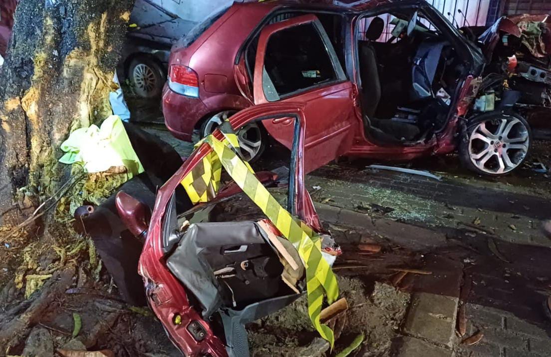 Acidente aconteceu na noite desse domingo (3) | Foto: PRF/DivulgaçãoSegundo a Polícia Rodoviária Federal (PRF), o motorista perdeu o controle do carro, que capotou e colidiu em uma árvore.