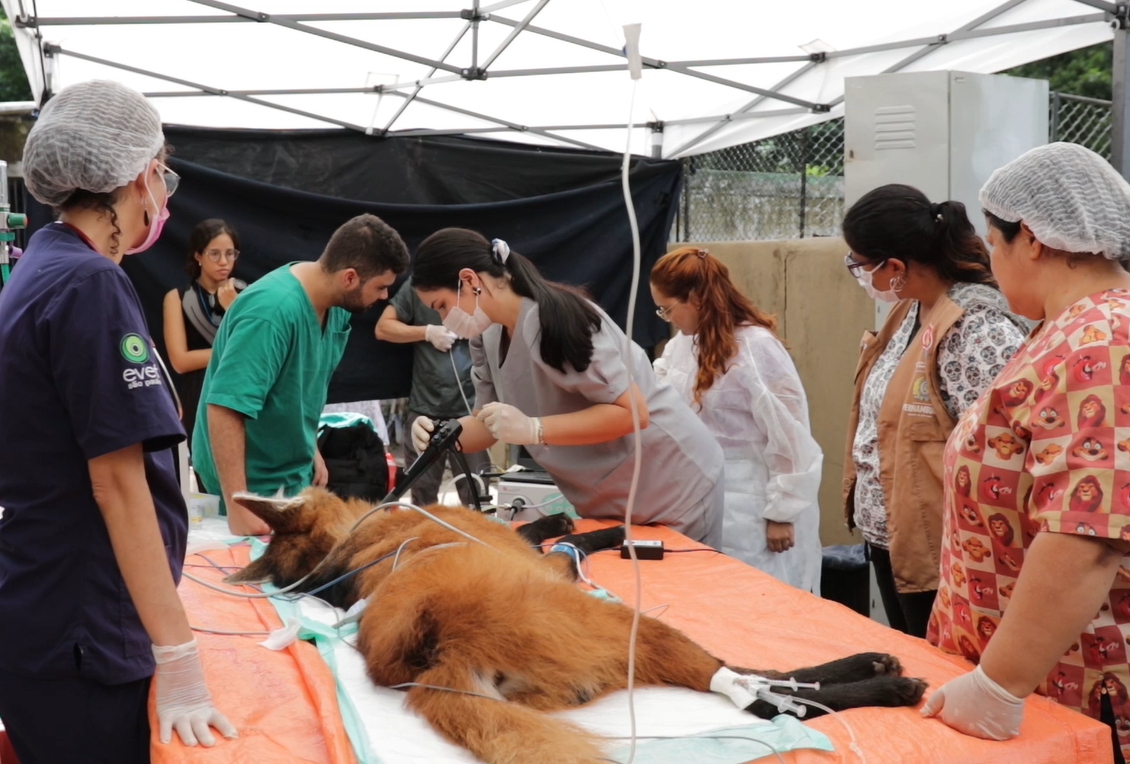 Ameaçado de extinção, lobo-guará realizou check-up clínico no Parque Estadual Dois Irmãos