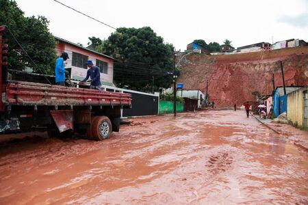 Parte de uma barreira deslizou na manhã desta quinta-feira (15) e assustou moradores da rua Antônio Porfírio, na Bomba do Hemetério, Zona Norte do Recife. Neste dia, marcado por chuva, a via foi tomada por barro.