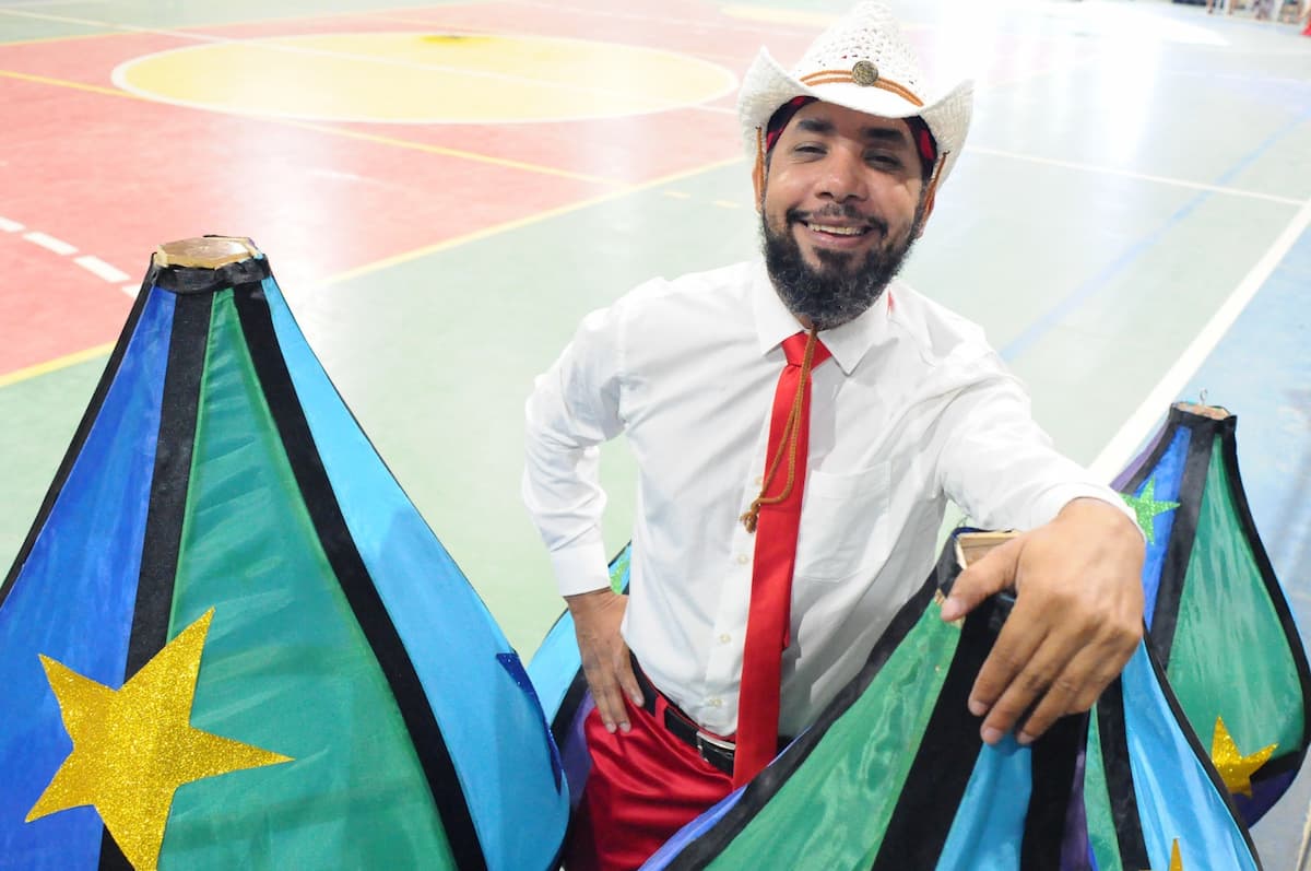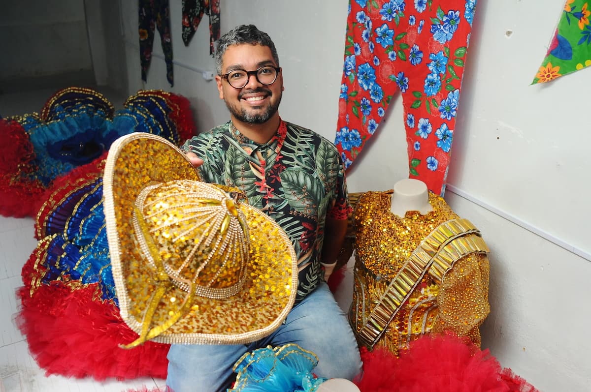 Anderson Gomes, projetista da Junina Tradição. Foto: Ricardo Fernandes / Folha de PernambucoAo lado de Anderson, outra figura circula incansavelmente pelo ambiente. É Ronaldo da Silva, o Foguinho, que passa quase despercebido em meio à correria da preparação.