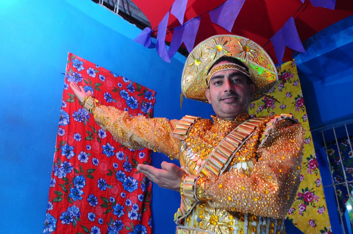Jimmy Glauber no traje de marcador da Origem Nordestina. Foto: Ricardo Fernandes / Folha de Pernambuco O azul de Nossa Senhora, que cobre as paredes do centro cultural da Origem, na Rua Córrego do Euclides, em Casa Amarela, Zona Norte do Recife, carrega a lembrança da promessa e transmite a mensagem do amor que vai além do espetáculo.