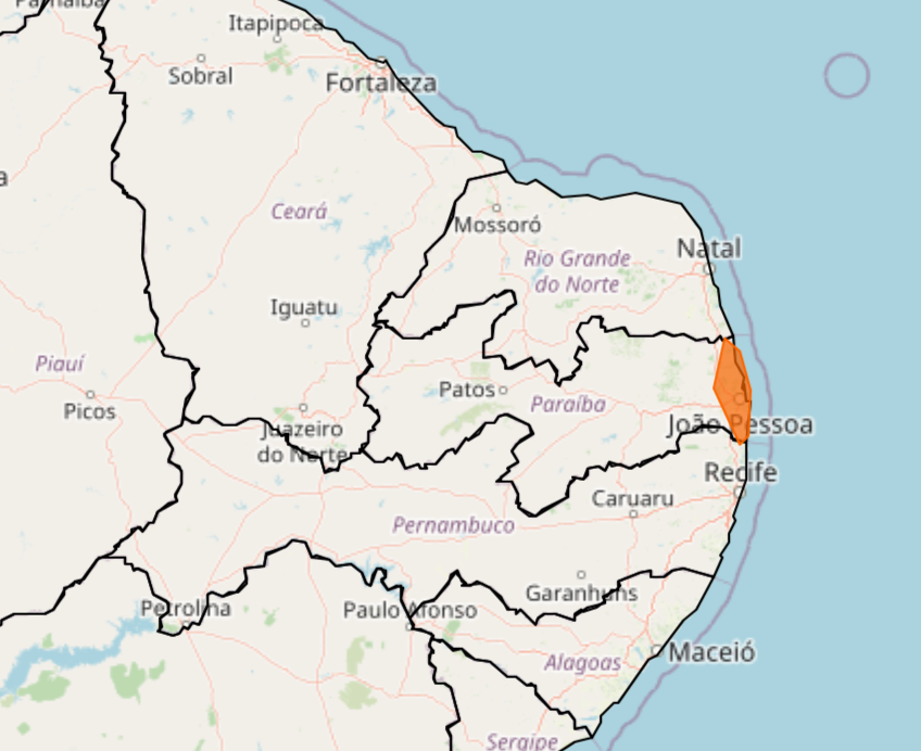 Em outros estados, as áreas afetadas são Mata e Agreste da Paraíba, além de Leste alagoano e Leste e Agreste potiguares.