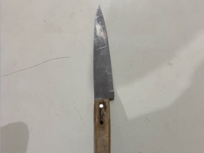 Faca usada no crime | Foto: Cortesia“Ela chegou a ser socorrida, mas, em decorrência dos ferimentos, faleceu no hospital. A motivação não ficou muito clara. No entanto, essa vítima já morava aqui em Vitória desde o mês de março. Foi relatado que, desde que ela chegou aqui, essas brigas eram comuns. Alguns dizem que ela pensou em registrar boletim de ocorrência contra a o suspeito, mas não o fez”, explica o delegado Luiz Paulo dos Santos, titular da Delegacia de Vitória.