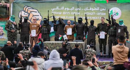 O grupo terrorista Hamas entregou, neste sábado, três israelenses à Cruz Vermelha em Gaza, como parte da quinta troca de reféns por prisioneiros palestinos, viabilizada pela trégua com Israel.