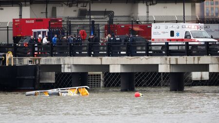 As unidades da polícia de Nova York e de Nova Jersey, divididas pelo rio Hudson, foram deslocadas para o local junto com embarcações dos bombeiros.