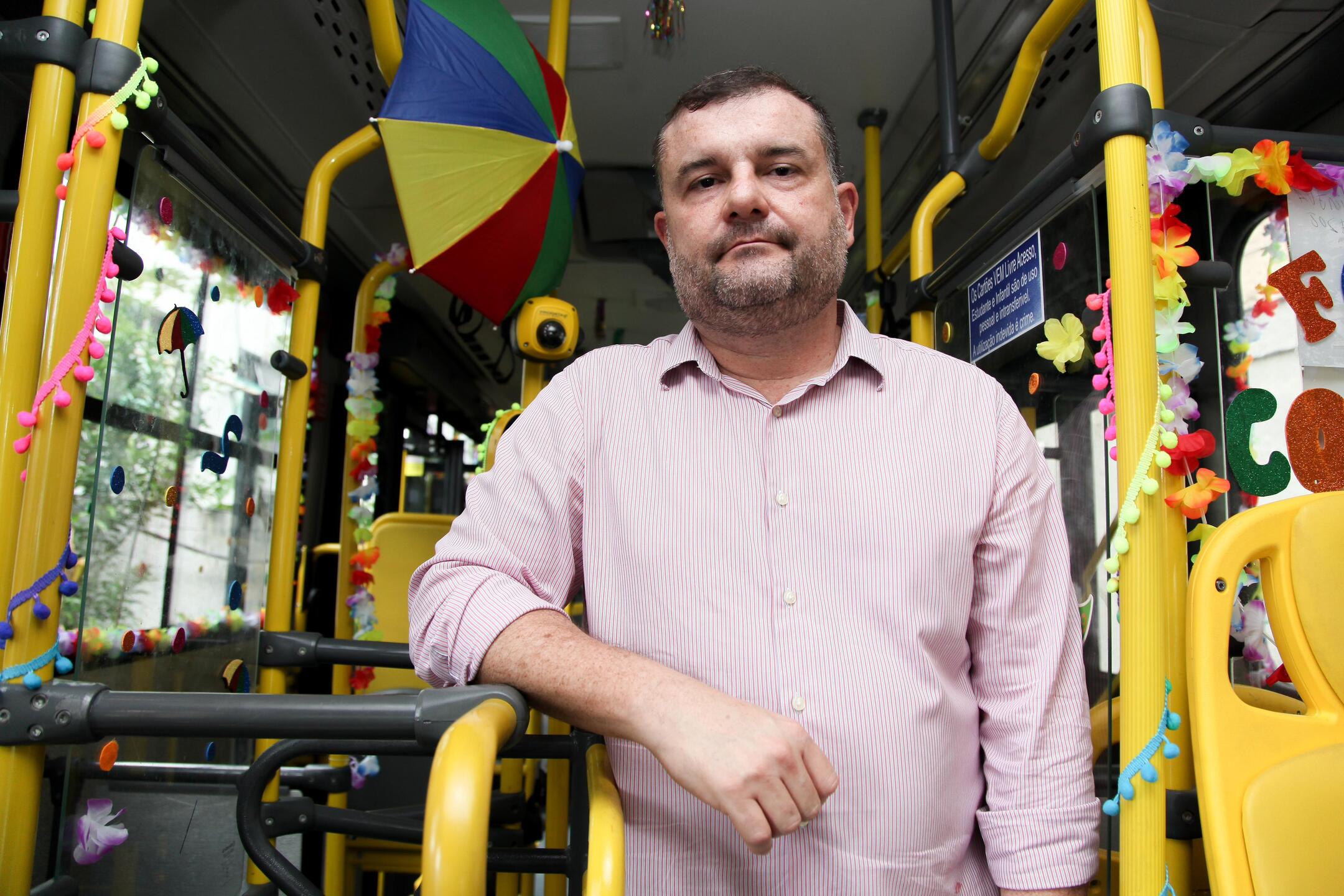 O diretor de operações do Conorte, Diego Benevides | Foto: Davi de Queiroz/Folha de Pernambuco"A parceria consiste em a gente adesivar o ônibus e fazer uma temática especial. A gente está participando dessa ação de Carnaval, porque há a identificação de que o hemocentro tem mais dificuldade de manter o banco de sangue. Então viemos aqui para motivar as pessoas, com o bloco ' Folia Solidária'", contou.