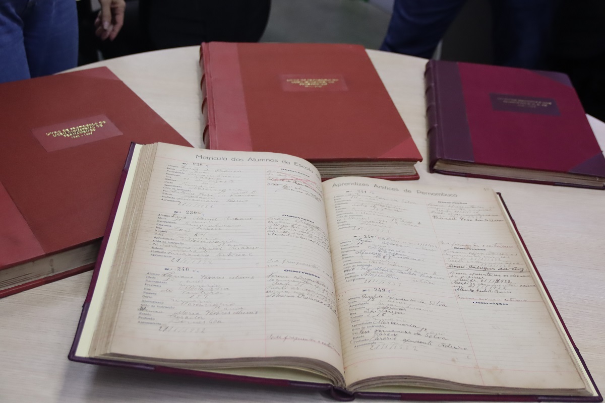 Entre os documentos recuperados está o primeiro livro de matrícula de alunos da instituição, datado de 1910. Eles estavam no acervo da então Escola Técnica Federal de Pernambuco, localizada no bairro do Derby, na área central do Recife.