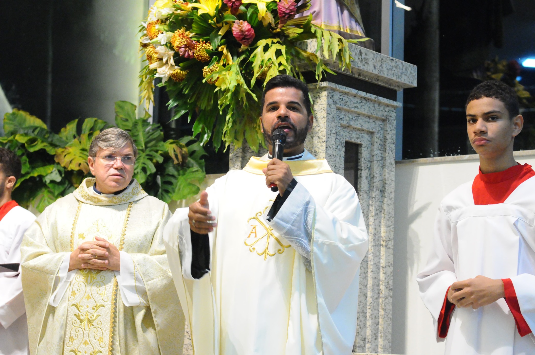 Na chegada ao Morro da Conceição, os estandartes das pastorais entraram no Santuário de Nossa Senhora da Conceição, ao som do louvor ‘Magnificat, Magnificat’, e a Santa Missa foi presidida pelo padre Damião Silva.