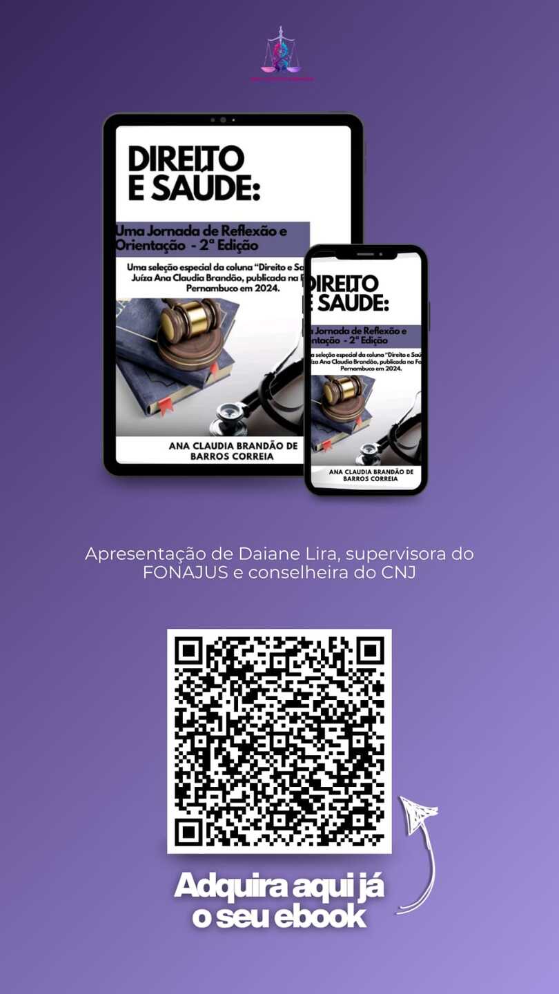 O e-book "Direito e saúde: uma jornada de reflexão e orientação", da juíza Ana Claudia Brandão pode ser comprado clicando neste link ou pelo QR Code da foto.