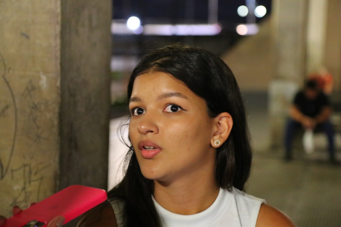 A vendedora Gabrielly Henrique, de 19 anos, conversou com a reportagem da Folha de Pernambuco, detalhando as dificuldades que enfrentou com a interrupção do andamento da Linha Sul. Ela estava na Estação Joana Bezerra, seguindo para o bairro de Afogados nesta noite.