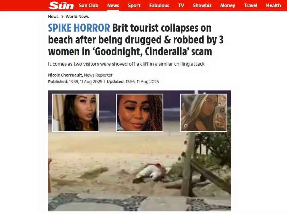 O The Sun destacou a prática conhecida como golpe do 'Boa noite, Cinderela', e falou do horror vivido pelos turistas. Isso foi definido como um "momento chocante". A publicação diz ainda que "o esquema se tornou cada vez mais comum no Brasil", entre "profissionais do sexo e acompanhantes" que "usam Rohypnol, GHB — ou qualquer droga usada em estupro — para drogar turistas e roubá-las".