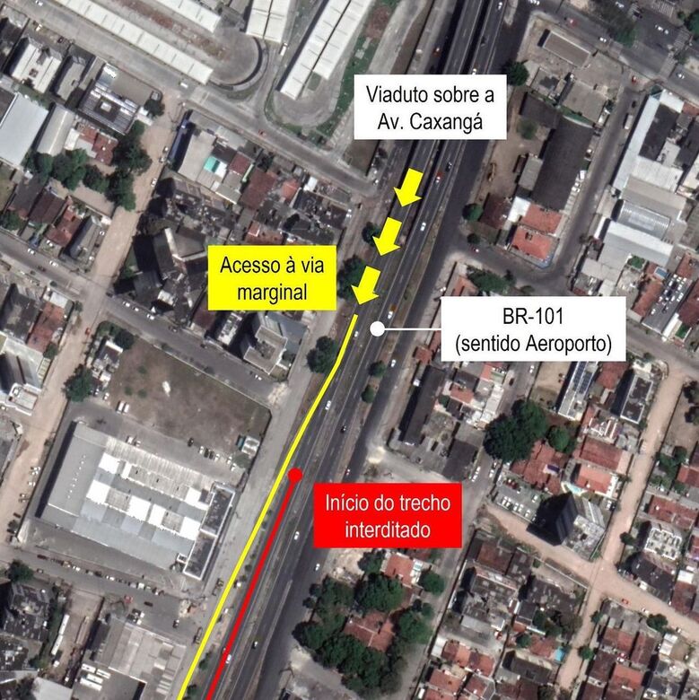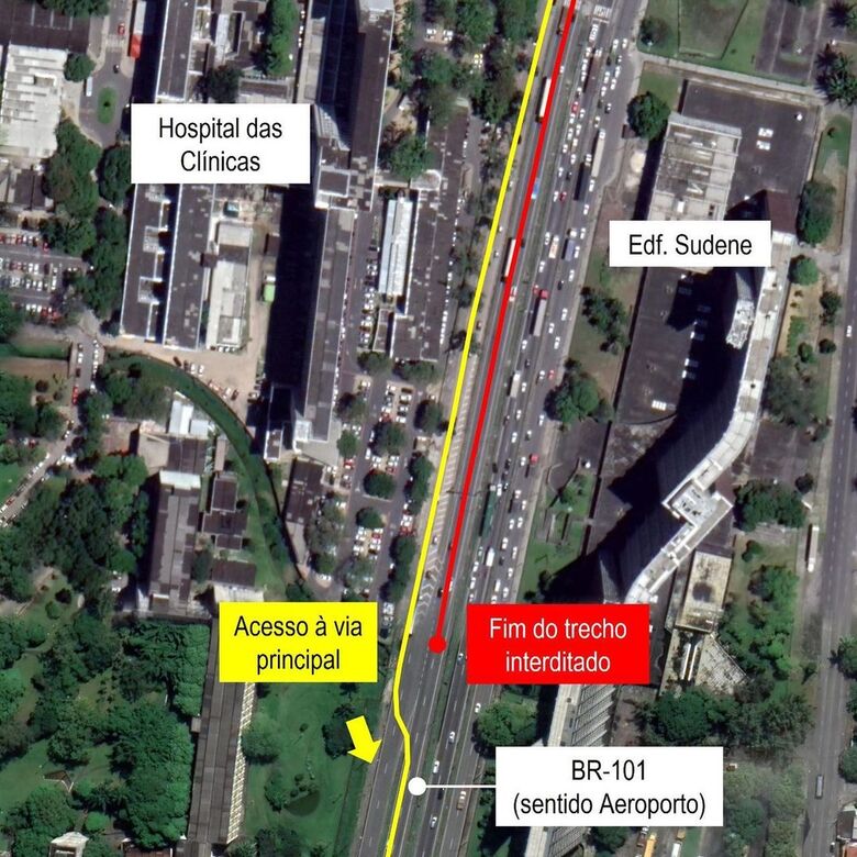 Para quem precisa passar pelo trecho, o departamento sugere que, ao descer o viaduto sobre a avenida Caxangá, no sentido Jaboatão, os motoristas mantenham-se à direita, entrem no desvio e sigam pela via marginal da BR-101 até o próximo desvio, antes do viaduto da UFPE, onde os condutores deverão retornar à pista principal da rodovia e seguirem seus destinos.