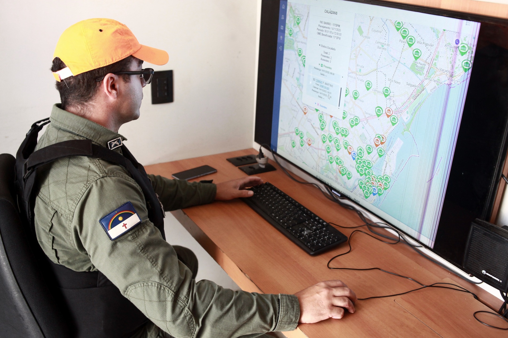 POE que será utilizada na operação | Foto: Davi de Queiroz/Folha de PernambucoNa primeira, há um mapa com pontos onde as viaturas estarão localizadas. Do caminhão vai ser possível acionar qualquer policial para algum ponto de urgência. Uma outra tela permite a visualização a partir de imagens de videomonitoramento.