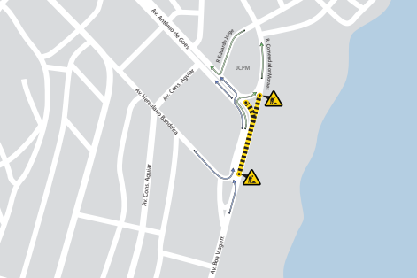 Após o cruzamento com a rua Herculano Bandeira, serão bloqueadas as duas faixas da direita que dão acesso à entrada de Brasília Teimosa e à pista leste da Avenida Antônio de Góes. Esse bloqueio vai até o final de novembro.