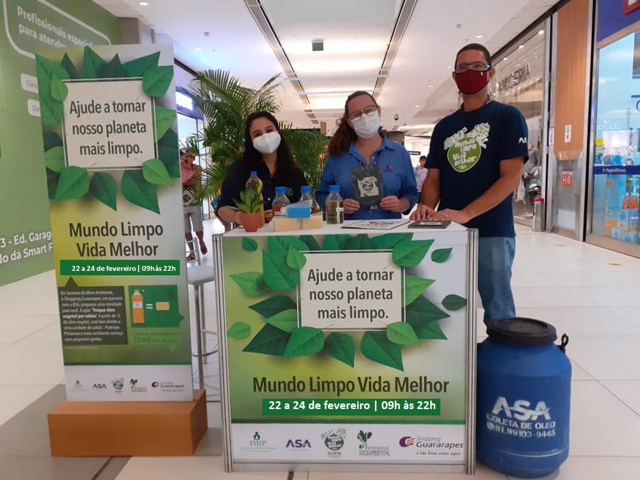 Desta terça (22) à próxima quinta-feira (24), o Shopping Guararapes, em Jaboatão dos Guararapes, no Grande Recife, terá um ponto de coleta para receber óleo de cozinha usado em fritura, para reproveitamento.