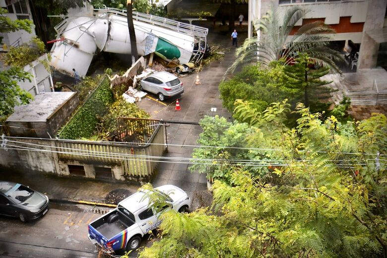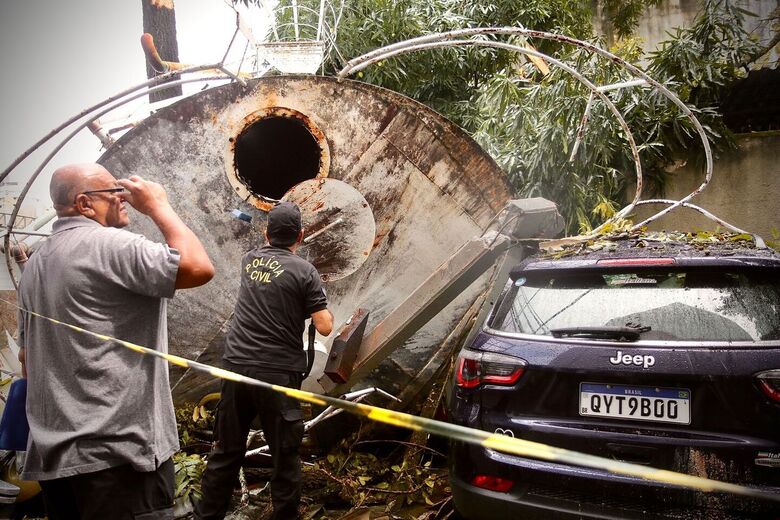 “Eu estava na cozinha, a gente escutou primeiro um barulho como se fosse a caixa d'água sangrando, até então a gente achou normal, porque em outros momentos eles já tinham aberto ela para fazer o sangramento. Daí começou um barulho como se fosse de chuva, mas esse barulho começou a ficar mais intenso. Quando eu corri para a varanda para ver do que se tratava, eu vi ela já virando e, tombando, dobrou”, detalhou ele.