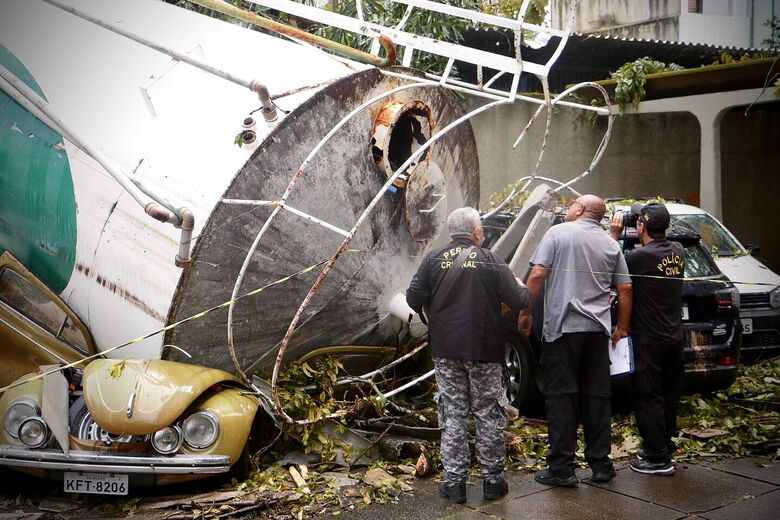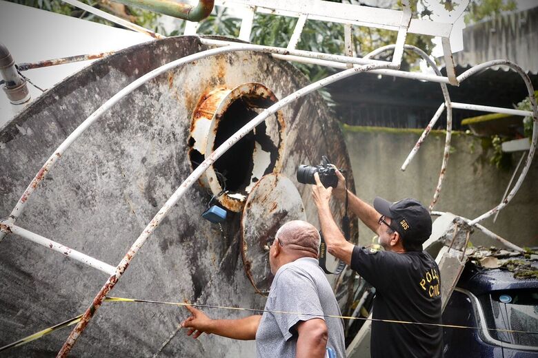 A Polícia Científica realiza, na manhã desta segunda-feira (18), a perícia do acidente que resultou na queda de uma caixa d’água metálica de 100 mil litros do supermercado Pão de Açúcar, no bairro do Parnamirim, Zona Norte do Recife. Os peritos foram procurados pela reportagem, que pediu informações sobre as possíveis causas do acidente, mas não concederam entrevista e se limitaram apenas a informar que o laudo pericial sai em 30 dias, prazo que pode ser estendido.
