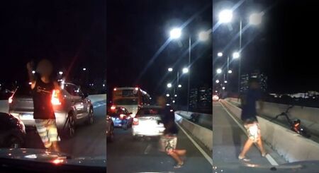 Imagens mostram o momento em que ao menos quatro homens chegam ao local de bicicleta e invadem pista sentido Boa Viagem