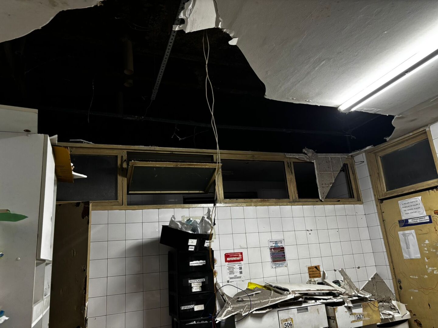 Nas redes sociais, imagens mostram parte do forro de gesso no chão. Também é possível verificar o buraco aberto no teto após o ocorrido.