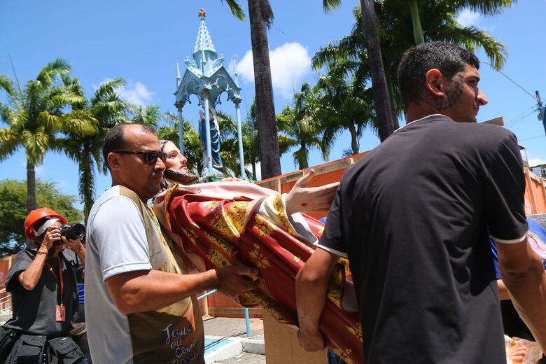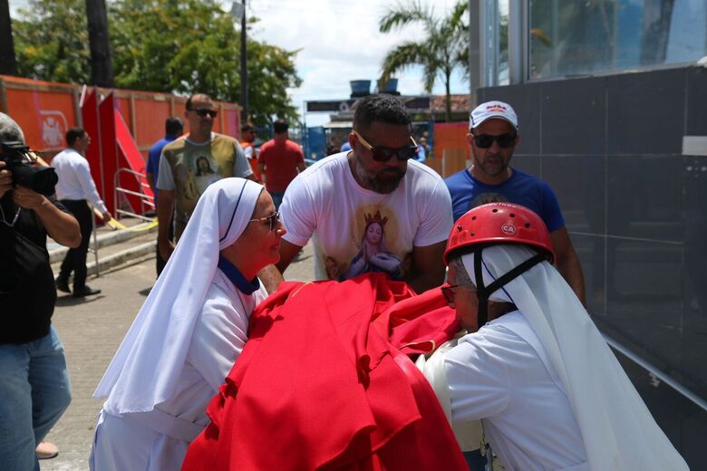 Enquanto era realizada a tradicional missa das manhãs de domingo, no Santuário de Nossa Senhora da Conceição, a segunda celebração após o desabamento do Santuário de Nossa Senhora da Conceição, neste domingo (1º), em uma estrutura montada pela Prefeitura do Recife em frente aos escombros, o trabalho de retirada do mobiliário e objetos valiosos da igreja seguiu sendo executado e deverá durar durar 30 dias, segundo o chefe do Centro de Operações do Recife (COP), Anderson Soares.