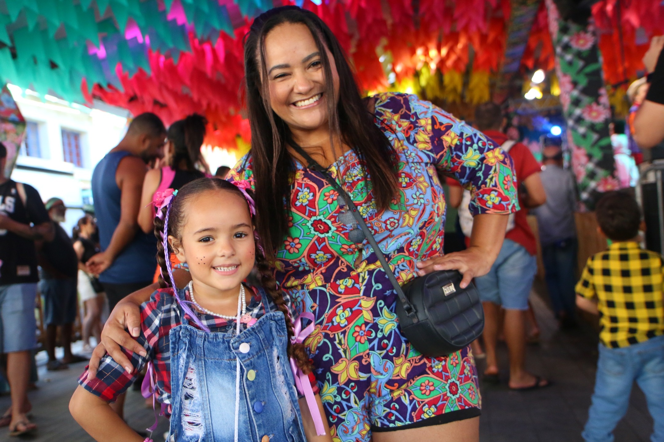 Mãe e filha saíram da Zona Norte do Recife | Foto: Paullo Allmeida/Folha de Pernambuco“Eu vi a programação no Instagram da Prefeitura do Recife, e resolvi trazer a minha filha hoje. É a primeira vez que ela vem. Eu gostei de um dos muitos detalhes: eles pegaram as músicas que a gente usa para ninar e incorporaram o ritmo junino. As crianças já sabem e dançam bastante, contou Ediana.