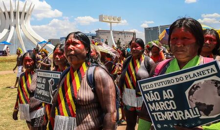A tese do marco temporal, defendida por setores do agronegócio, da mineração e de partidos de direita, defende que indígenas só podem reivindicar territórios que ocupavam em 5 de outubro de 1988, data de promulgação da Constituição.