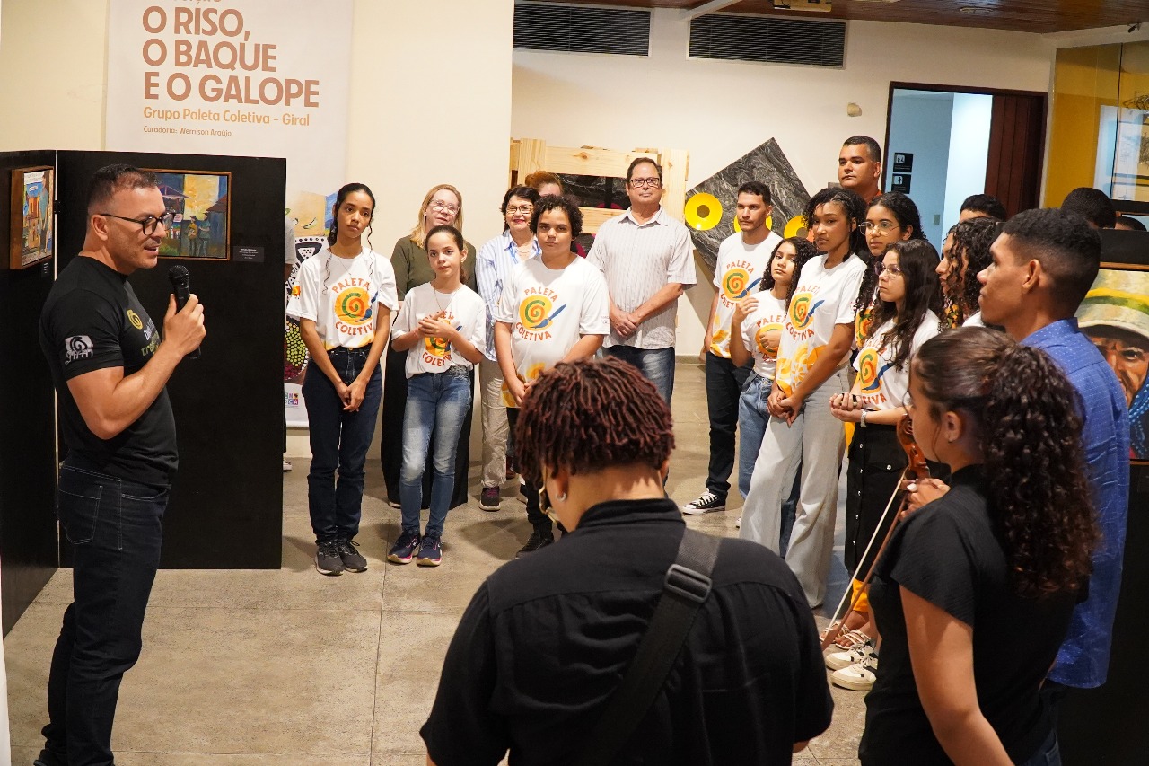A cultura popular pernambucana ganha nova leitura na exposição “O Riso, o Baque e o Galope”, aberta nesta terça-feira (19) no Museu do Estado de Pernambuco. A mostra, que segue até 24 de agosto, reúne 17 pinturas assinadas pelo grupo Paleta Coletiva, formado por crianças e adolescentes atendidos pela ONG Giral, em Glória do Goitá, Zona da Mata Norte.