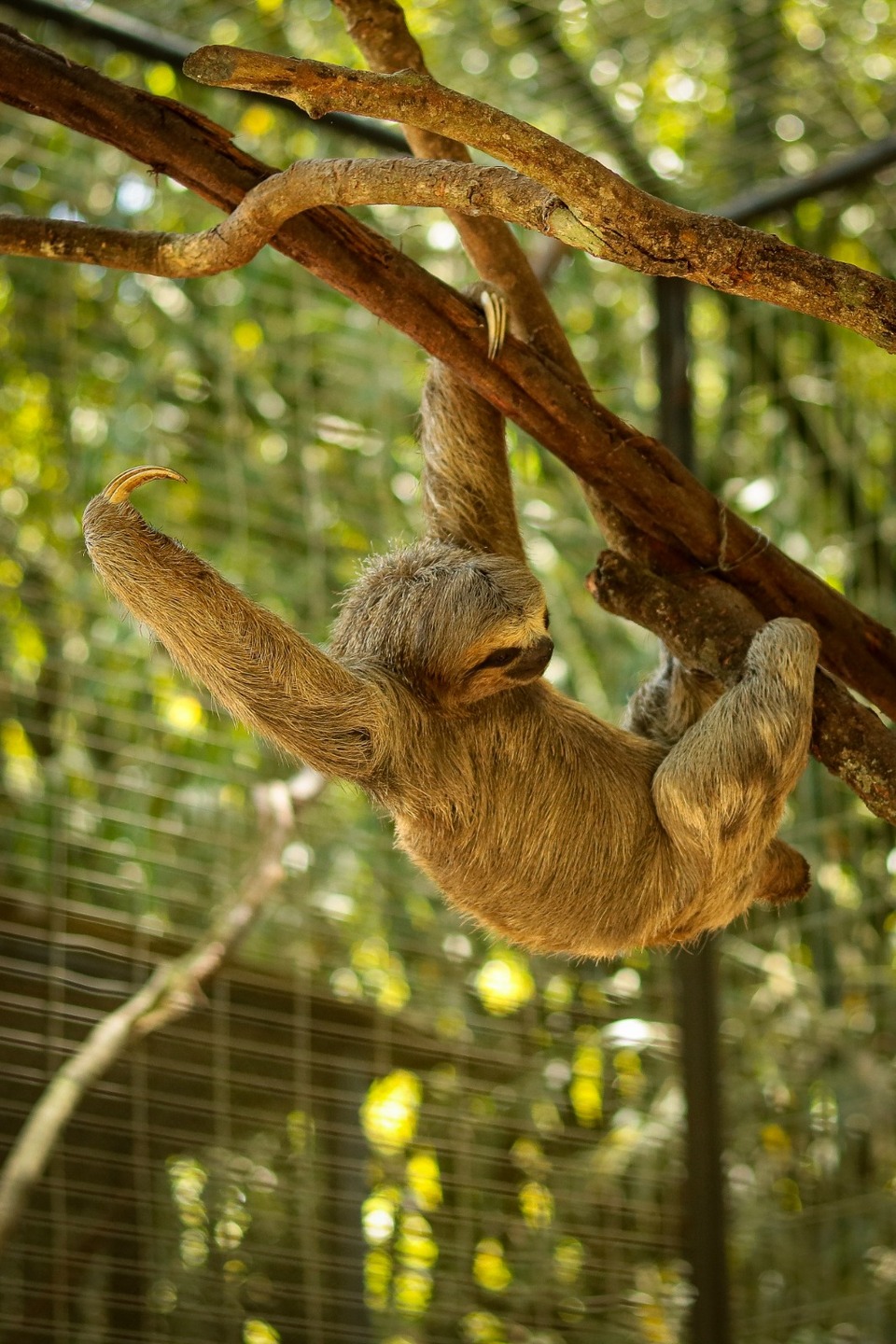 Conheça a preguiça-de-garganta-marrom, uma das espécies de vida livre do Parque Dois Irmãos