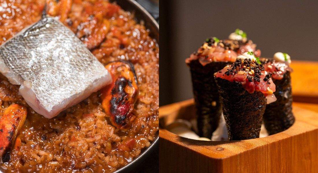Arroz de forno com mexilhão e peixe confitado, e minitemakis de atum do Madê. Fotos: DivulgaçãoNo início do ano, o Madê entrou na lista 50 Best Discovery, selo do grupo The World’s 50 Best Restaurants, que recomenda casas em todo o mundo que valem a pena ser visitadas off circuitos visados - aquelas para se ficar de olho.